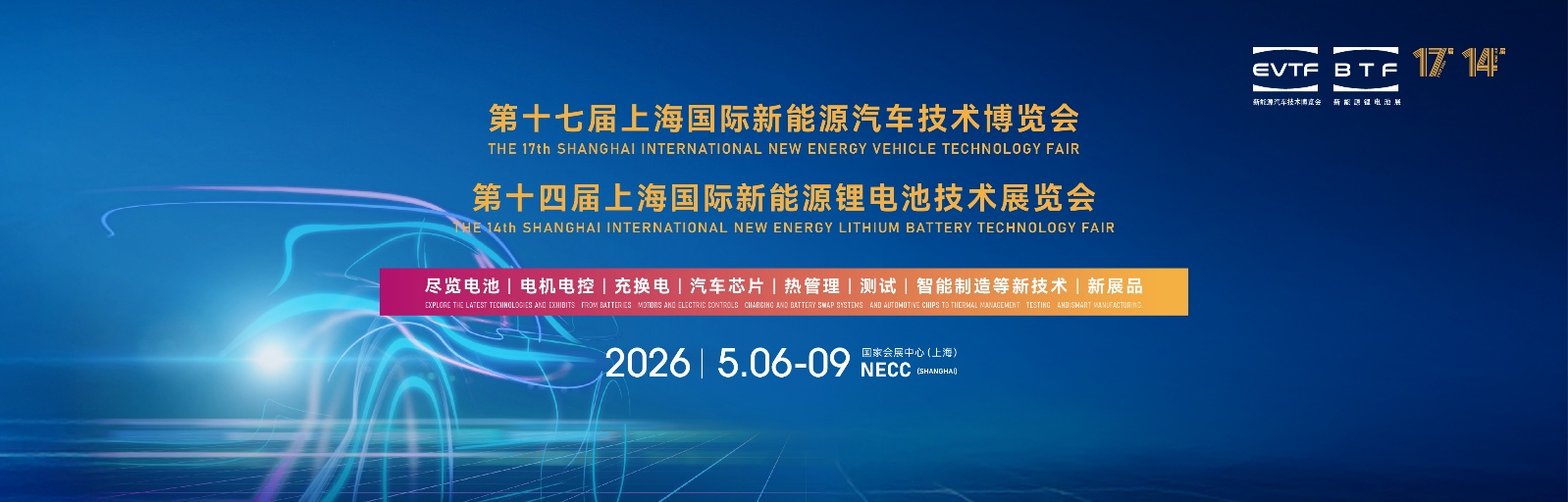 亚洲新能源汽车技术领域的风向标盛会——第十七届上海国际新能源汽车技术博览会(EVTF) 与 第十四届上海国际新能源锂电池技术展览会(BTF),将于2026年5月6日至9日在国家会展中心(上海虹桥)隆重举行。本届展会将汇聚全球前沿科技,全方位展示从核心零部件到智能终端的全产业链生态,为行业呈现一场规模空前的技术盛宴。